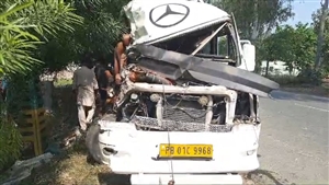ਜਦੋਂ ਓਹ ਬਾਗਪੁਰ ਸਤੌਰ ਨਜ਼ਦੀਕ ਪਹੁੰਚੇ ਤਾਂ ਟਰੈਕਟਰ ਟਰਾਲੀ ਜੋਂ ਲੱਕੜ ਨਾਲ ਲੱਦੀ ਹੋਈ ਸੀ, ਦੇ ਨਾਲ ਟੱਕਰ ਹੋ ਗਈ।