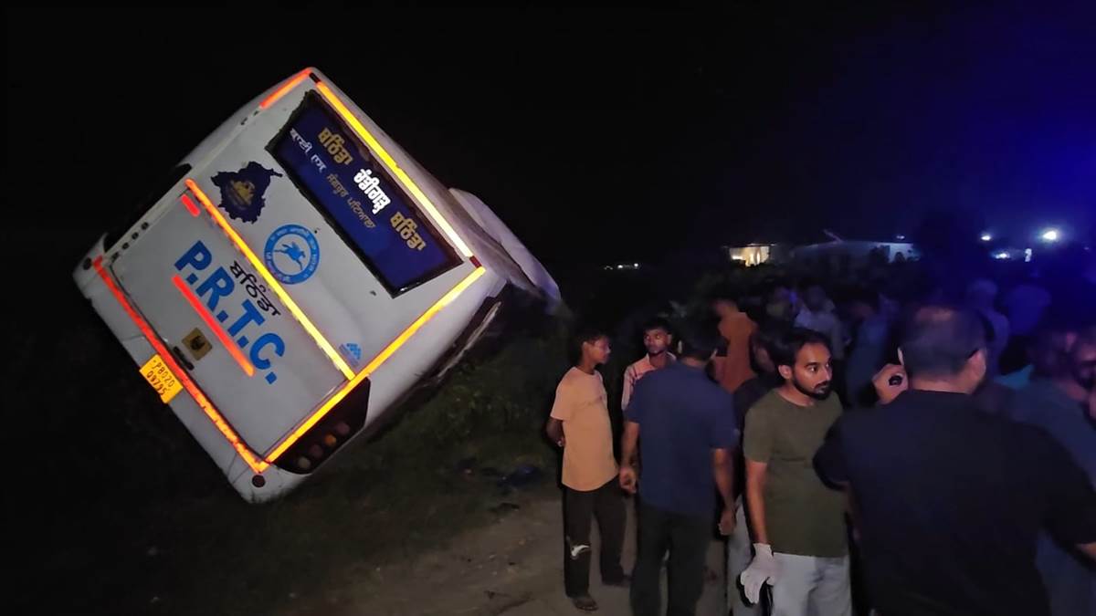 ਚੰਡੀਗੜ੍ਹ ਤੋਂ ਬਠਿੰਡਾ ਜਾ ਰਹੀ ਪੀਆਰਟੀਸੀ ਦੀ ਇੱਕ ਸਰਕਾਰੀ ਏਸੀ ਬੱਸ ਸੰਗਰੂਰ ਪਹੁੰਚਣ ਤੋਂ ਪਹਿਲਾਂ ਭਵਾਨੀਗੜ੍ਹ ਨੇੜੇ ਇੱਕ ਟੈਂਪੂ ਨੂੰ ਬਚਾਉਂਦੇ ਹੋਏ ਬੇਕਾਬੂ ਹੋ ਕੇ ਸੜਕ ਕਿਨਾਰੇ ਟੋਏ ਵਿੱਚ ਪਲਟ ਗਈ।ਹਾਦਸੇ ਦੌਰਾਨ ਬੱਸ ਦੇ ਡਰਾਈਵਰ-ਕੰਡਕਟਰ ਸਮੇਤ 30 ਤੋਂ ਵੱਧ ਸਵਾਰੀਆਂ ਗੰਭੀਰ ਜ਼ਖ਼ਮੀ ਹੋ ਗਈਆਂ। ਹਾਦਸੇ ਤੋਂ ਤੁਰੰਤ ਬਾਅਦ ਐਸਟੀਐਫ ਦੀ ਟੀਮ ਸਮੇਤ ਰਾਹਗੀਰਾਂ ਨੇ ਮੌਕੇ ’ਤੇ ਪਹੁੰਚ ਕੇ ਸਵਾਰੀਆਂ ਨੂੰ ਬੱਸ ਵਿੱਚੋਂ ਬਾਹਰ ਕੱਢਿਆ। ਗੰਭੀਰ ਰੂਪ ‘ਚ ਜ਼ਖਮੀ ਹੋਏ ਯਾਤਰੀਆਂ ‘ਚੋਂ 16 ਨੂੰ ਰਜਿੰਦਰਾ ਹਸਪਤਾਲ ਪਟਿਆਲਾ, 03 ਨੂੰ ਸਿਵਲ ਹਸਪਤਾਲ ਸੰਗਰੂਰ ਰੈਫਰ ਕਰ ਦਿੱਤਾ ਗਿਆ, ਜਦਕਿ ਬਾਕੀਆਂ ਨੂੰ ਮੁੱਢਲੀ ਸਹਾਇਤਾ ਦੇ ਕੇ ਘਰ ਭੇਜ ਦਿੱਤਾ ਗਿਆ।ਇਸ ਹਾਦਸੇ ‘ਚ ਇਕ ਔਰਤ ਸਮੇਤ ਦੋ ਲੋਕਾਂ ਦੀ ਮੌਤ ਹੋ ਗਈ। ਮਰਨ ਵਾਲਿਆਂ ਵਿੱਚ ਰਜਿੰਦਰ ਕੁਮਾਰ (28) ਪੁੱਤਰ ਰਾਮ ਸੁਭਾਗ ਵਾਸੀ ਬਾਲਦਕਲਾਂ ਅਤੇ ਗੁਰਪ੍ਰੀਤ ਕੌਰ (50) ਵਾਸੀ ਤੁੰਗਵਾਲੀ ਜ਼ਿਲ੍ਹਾ ਬਠਿੰਡਾ ਦੀ ਮੌਤ ਹੋ ਗਈ।ਬਾਕੀ ਜ਼ਖ਼ਮੀ ਪਟਿਆਲਾ ਦੇ ਰਾਜਿੰਦਰਾ ਹਸਪਤਾਲ ਵਿੱਚ ਜ਼ੇਰੇ ਇਲਾਜ ਹਨ। ਮੌਕੇ ‘ਤੇ ਪਹੁੰਚੇ ਥਾਣਾ ਭਵਾਨੀਗੜ੍ਹ ਦੇ ਐੱਸਐੱਚਓ ਜਸਵੀਰ ਸਿੰਘ ਨੇ ਦੱਸਿਆ ਕਿ ਹਾਦਸੇ ‘ਚ ਜ਼ਖਮੀ ਹੋਏ ਯਾਤਰੀਆਂ ਨੂੰ ਹਸਪਤਾਲ ‘ਚ ਦਾਖਲ ਕਰਵਾਇਆ ਗਿਆ ਹੈ, ਜਿੱਥੇ ਦੋ ਦੀ ਮੌਤ ਹੋ ਗਈ ਹੈ। ਮਾਮਲੇ ਦੀ ਜਾਂਚ ਕੀਤੀ ਜਾ ਰਹੀ ਹੈ।