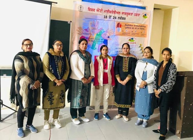 ਇਸ ਮੌਕੇ ਡਾ ਮਨੂੰ ਚੋਪੜਾ ਵੱਲੋਂ ਐਂਟੀਮਾਈਕਰੋਬੀਅਲ ਜਾਗਰੂਕਤਾ ਕਿਉਂ ਜਰੂਰੀ ਹੈ ਸੰਬੰਧੀ ਪੀਪੀਟੀ ਰਾਹੀਂ ਜਾਣਕਾਰੀ ਸਾਂਝੀ ਕਰਦਿਆਂ ਦੱਸਿਆ ਕਿ ਬਿਮਾਰੀ ਨੂੰ ਠੀਕ ਕਰਨ ਲਈ ਵਰਤੀ ਜਾਂਦੀ ਐਂਟੀ ਮਾਈਕਰੋਬੀਅਲ ਡਰੱਗ ਦੇ ਇਸਤੇਮਾਲ ਨਾਲ ਹੌਲੀ ਹੌਲੀ ਬੈਕਟੀਰੀਆ ਐਨੇ ਸ਼ਕਤੀਸ਼ਾਲੀ ਹੋ ਜਾਂਦੇ ਹਨ ਕਿ ਉਨ੍ਹਾਂ ਉਪਰ ਇਹਨਾਂ ਡਰਗਜ ਦਾ ਪ੍ਰਭਾਵ ਘੱਟ ਜਾਂਦਾ ਹੈ। ਜਿਸ ਨਾਲ ਬਿਮਾਰੀ ਨੂੰ ਠੀਕ ਕਰਨ ਲਈ ਕਠਨਾਈ ਆਉਂਦੀ ਹੈ। ਰੋਗਾਣੂਨਾਸ਼ਕ ਪ੍ਰਤੀਰੋਧ ਪ੍ਰਤੀ ਜਾਗਰੂਕਤਾ ਵਧਾਉਣ ਦਾ ਮੁੱਖ ਮਕਸਦ ਹੈ ਡਰੱਗ ਰੋਧਕ ਲਾਗਾਂ ਦੇ ਹੋਰ ਉਭਰਨ ਅਤੇ ਫੈਲਣ ਤੋਂ ਬਚਣ ਲਈ, ਆਮ ਲੋਕਾਂ, ਸਿਹਤ ਕਰਮੀਆਂ ਵਿਚ ਐਂਟੀ ਮਾਈਕਰੋਬੀਅਲ ਦੀ ਜਿੰਮੇਵਾਰੀ ਨਾਲ ਵਰਤੋਂ ਕਰਨ ਲਈ ਵਧੀਆ ਅਭਿਆਸਾਂ ਨੂੰ ਉਤਸ਼ਾਹਿਤ ਕਰਨਾ ਹੈ। ਉਹਨਾਂ ਦੱਸਿਆ ਕਿ ਐਂਟੀਬਾਉਟਿਕਸ ਦਾ ਲੋੜੋਂ ਵੱਧ ਜਾਂ ਲੋੜੋਂ ਘੱਟ ਜਾਂ ਫਿਰ ਬੇਲੋੜਾ ਇਸਤੇਮਾਲ ਬੈਕਟੀਰੀਆ ਦੀ ਰਜਿਸਟੈਂਸ ਨੂੰ ਵਧਾ ਰਿਹਾ ਹੈ। ਜਿਸ ਕਰਕੇ ਉਸ ਉੱਪਰ ਦਵਾਈਆਂ ਦਾ ਅਸਰ ਘੱਟ ਹੋ ਰਿਹਾ ਹੈ ਤੇ ਬੈਕਟੀਰੀਆ ਸੁਪਰਬੱਗ ਵਿਚ ਬਦਲ ਰਿਹਾ ਹੈ। ਅਨਪੜ੍ਹਤਾ, ਅਗਿਆਨਤਾ, ਸਾਫ ਸਫਾਈ ਦੀ ਕਮੀ ਇਸ ਦੇ ਮੁੱਖ ਕਾਰਨ ਹਨ। ਆਮ ਲੋਕਾਂ ਵਿਚ ਇਸ ਪ੍ਰਤੀ ਜਾਗਰੂਕਤਾ ਫੈਲਾਅ ਕੇ ਸਾਫ ਸਫਾਈ ਤੇ ਖਾਸ ਤੌਰ ਤੇ ਹੱਥਾਂ ਦੀ ਸਫਾਈ ਨਾਲ ਇਸ ਤੇ ਕਾਫੀ ਹੱਦ ਤੱਕ ਕਾਬੂ ਪਾਇਆ ਜਾ