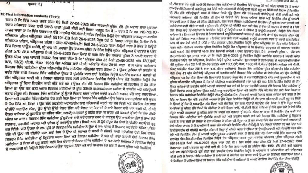 ਇਸ ਐਫਆਈਆਰ ‘ਚ ਬਿਕਰਮ ਮਜੀਠੀਆ ‘ਤੇ ਵਿਜੀਲੈਂਸ ਅਧਿਕਾਰੀਆਂ ਨਾਲ ਬਹਿਸਬਾਜ਼ੀ, ਆਪਣੇ 30 ਤੋਂ 40 ਸਮਰਥਕਾਂ ਨਾਲ ਹੁੱਲੜਬਾਜ਼ੀ ਦੇ ਇਲਜ਼ਾਮ ਲੱਗੇ ਹਨ। ਉਨ੍ਹਾਂ ਨੇ ਇਸ ਦੌਰਾਨ ਵਿਜੀਲੈਂਸ ਟੀਮ ਨਾਲ ਸਹਿਯੋਗ ਨਹੀਂ ਕੀਤਾ। ਇਸ ਦੇ ਨਾਲ ਹੀ ਵਿਜੀਲੈਂਸ ਟੀਮ ਨੇ ਉਨ੍ਹਾਂ ਨੂੰ ਵੀਡੀਓਗ੍ਰਾਫੀ ਕਰਨ ਤੋਂ ਰੋਕਿਆ, ਪਰ ਉਨ੍ਹਾਂ ਨੇ ਜ਼ਬਰਦਸਤੀ ਵੀਡੀਓ ਰਿਕਾਰਡ ਕੀਤੀ।