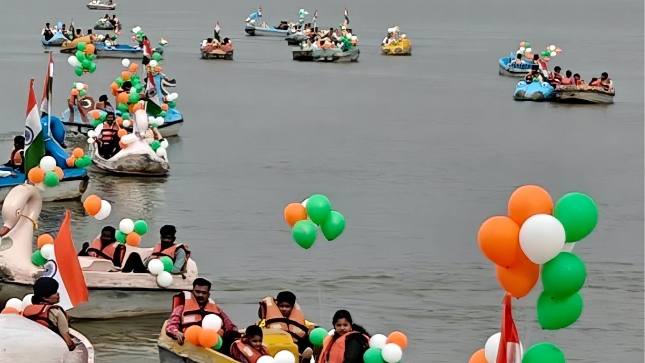 ਚੰਡੀਗੜ੍ਹ ਦੀ ਸੁਖਨਾ ਝੀਲ ‘ਤੇ ਆਜ਼ਾਦੀ ਦਿਵਸ ਮੌਕੇ ਦੇਸ਼ ਭਗਤੀ ਦਾ ਇੱਕ ਅਨੋਖਾ ਨਜ਼ਾਰਾ ਦੇਖਣ ਨੂੰ ਮਿਲਿਆ। ਚੰਡੀਗੜ੍ਹ ਸਿਟਕੋ ਦੀ ਪਹਿਲਕਦਮੀ ‘ਤੇ, ਪੂਰੇ ਝੀਲ ਖੇਤਰ ਨੂੰ ਤਿਰੰਗੇ ਦੀ ਥੀਮ ‘ਤੇ ਸਜਾਇਆ ਗਿਆ ਸੀ। ਇਸ ਵਿੱਚ ਰੰਗ-ਬਿਰੰਗੇ ਗੁਬਾਰਿਆਂ ਦੀ ਵਰਤੋਂ ਕੀਤੀ ਗਈ ਸੀ। ਗੁਬਾਰਿਆਂ ਨੂੰ ਨਾ ਸਿਰਫ਼ ਝੰਡਿਆਂ ਦੇ ਨਾਲ ਸਜਾਇਆ ਗਿਆ ਸੀ, ਸਗੋਂ ਉਨ੍ਹਾਂ ਨੂੰ ਕਿਸ਼ਤੀਆਂ ‘ਤੇ ਰੱਖ ਕੇ ਅਸਮਾਨ ਵਿੱਚ ਉਡਾਇਆ ਗਿਆ ਸੀ।