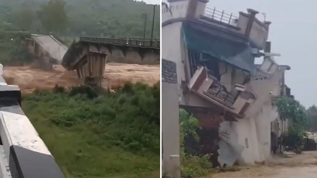 ਪੰਜਾਬ ਤੇ ਪਹਾੜੀ ਸੂਬੇ ਹਿਮਾਚਲ ਪ੍ਰਦੇਸ਼ ‘ਚ ਲਗਾਤਾਰ ਪੈ ਰਹੀ ਬਾਰਿਸ਼ ਹੁਣ ਮੁਸੀਬਤ ਦਾ ਕਾਰਨ ਬਣਦੀ ਜਾ ਰਹੀ ਹੈ। ਬੀਤੇ ਦਿਨ ਪਠਾਨਕੋਟ ਤੇ ਗੁਰਦਾਸਪੁਰ ‘ਚ ਭਾਰੀ ਬਾਰਿਸ਼ ਕਾਰਨ ਸਥਿਤੀ ਗੰਭੀਰ ਬਣਦੀ ਦਿਖਾਈ ਦਿੱਤੀ। ਪਠਾਨਕੋਟ ਦੇ ਪਿੰਡ ਕੋਠੇ ਮਵਾਲ ‘ਚ ਇੱਕ ਘਰ ਮੀਂਹ ਦੇ ਤੇਜ਼ ਵਹਾਅ ਵਾਲੇ ਪਾਣੀ ਨਾਲ ਢਹਿ ਢੇਰੀ ਹੋ ਗਿਆ। ਇਸ ਦੀ ਵੀਡੀਓ ਕਾਫੀ ਵਾਇਰਲ ਹੋ ਰਹੀ ਹੈ।