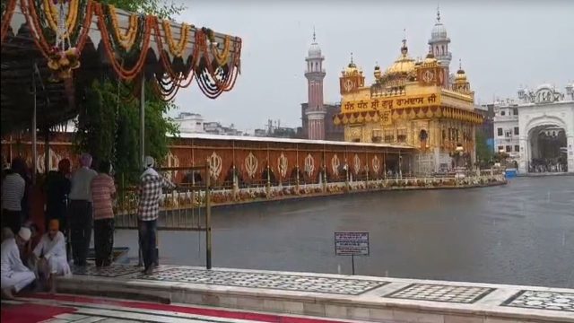 ਪੰਜਵੇਂ ਪਾਤਸ਼ਾਹ ਸ੍ਰੀ ਗੁਰੂ ਅਰਜੁਨ ਦੇਵ ਜੀ ਮਹਾਰਾਜ ਦੇ ਗੁਰਤਾਗੱਦੀ ਦਿਵਸ ਮੌਕੇ ਅੱਜ ਸੱਚਖੰਡ ਸ੍ਰੀ ਹਰਿਮੰਦਰ ਸਾਹਿਬ ਵਿਖੇ ਵਿਸ਼ਾਲ ਸੰਖਿਆ ‘ਚ ਸੰਗਤਾਂ ਨਤਮਸਤਕ ਹੋ ਕੇ ਹਾਜ਼ਰੀਆਂ ਭਰ ਰਹੀਆਂ ਹਨ। ਅੱਜ ਸਵੇਰ ਤੋਂ ਹੀ ਅੰਮ੍ਰਿਤਸਰ ‘ਚ ਲਗਾਤਾਰ ਮੀਂਹ ਪੈ ਰਿਹਾ ਹੈ, ਇਸ ਦੇ ਬਾਵਜੂਦ ਸੰਗਤਾਂ ਦੀ ਆਸਥਾ ‘ਚ ਰਤੀ ਭਰ ਵੀ ਕਮੀ ਨਹੀਂ ਆਈ। ਪਵਿੱਤਰ ਸਰੋਵਰ ‘ਚ ਇਸ਼ਨਾਨ ਕਰਕੇ ਸੰਗਤਾਂ ਨੇ ਗੁਰਬਾਣੀ ਦਾ ਆਨੰਦ ਮਾਣਿਆ ਤੇ ਸਰਬੱਤ ਦੇ ਭਲੇ ਦੀ ਅਰਦਾਸ ਕੀਤੀ।