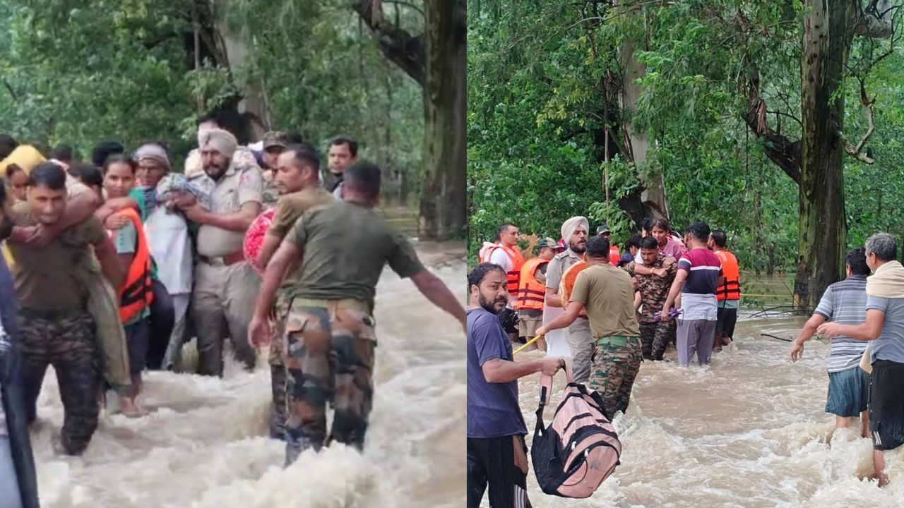 ਪੰਜਾਬ ‘ਚ ਲਗਾਤਾਰ ਹੋ ਰਹੀ ਬਾਰਿਸ਼ ਤੇ ਡੈਮਾਂ ਤੋਂ ਲਗਾਤਾਰ ਛੱਡੇ ਜਾ ਰੇ ਪਾਣੀ ਕਾਰਨ ਪੰਜਾਬ ਦੇ 7 ਜ਼ਿਲ੍ਹਿਆਂ ‘ਚ ਹੜ੍ਹ ਵਰਗੇ ਹਾਲਾਤ ਹਨ। ਪਠਾਨਕੋਟ, ਗੁਰਦਾਸਪੁਰ, ਹੁਸ਼ਿਆਰਪੁਰ, ਤਰਨਤਾਰਨ, ਕਪੂਰਥਲਾ, ਫਿਰੋਜ਼ਪੁਰ ਤੇ ਫਾਜ਼ਿਲਕਾ ‘ਦੇ 150 ਤੋਂ ਵੱਧ ਪਿੰਡਾਂ ‘ਚ ਕਈ-ਕਈ ਫੱਟ ਤੱਕ ਪਾਣੀ ਆ ਗਿਆ ਹੈ। ਲੋਕਾਂ ਦੇ ਘਰ ਤੇ ਖੇਤ ਪਾਣੀ ‘ਚ ਡੁੱਬ ਗਏ ਹਨ। ਐਨਡੀਆਰਐਫ, ਐਸਡੀਆਰਐਫ, ਭਾਰਤੀ ਫੌਜ ਤੇ ਪੰਜਾਬ ਪੁਲਿਸ ਰੈਸਕਿਊ ਆਪ੍ਰੇਸ਼ਨ ਚਲਾ ਰਹੀਆਂ ਹਨ। ਹੁਣ ਤੱਕ ਵੱਖ-ਵੱਖ ਥਾਂਵਾਂ ਤੋਂ 92 ਲੋਕਾਂ ਨੂੰ ਰੈਸਕਿਊ ਕੀਤਾ ਗਿਆ ਹੈ।