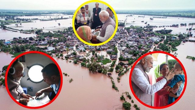 ਪ੍ਰਧਾਨ ਮੰਤਰੀ ਨਰਿੰਦਰ ਮੋਦੀ ਅੱਜ ਪੰਜਾਬ ਅਤੇ ਹਿਮਾਚਲ ਪ੍ਰਦੇਸ਼ ਦੇ ਹੜ੍ਹ ਪ੍ਰਭਾਵਿਤ ਇਲਾਕਿਆਂ ਦੇ ਦੌਰੇ ‘ਤੇ ਹਨ। ਉਨ੍ਹਾਂ ਨੇ ਕੁੱਲੂ, ਮੰਡੀ ਅਤੇ ਚੰਬਾ ਵਿੱਚ ਹੈਲੀਕਾਪਟਰ ਰਾਹੀਂ ਹੜ੍ਹਾਂ ਨਾਲ ਹੋਏ ਨੁਕਸਾਨ ਦਾ ਹਵਾਈ ਸਰਵੇਖਣ ਕੀਤਾ। ਇਸ ਤੋਂ ਬਾਅਦ ਉਨ੍ਹਾਂ ਨੇ ਧਰਮਸ਼ਾਲਾ ਵਿੱਚ ਆਫ਼ਤ ਸੰਬੰਧੀ ਇੱਕ ਮੀਟਿੰਗ ਕੀਤੀ, ਜਿਸ ਵਿੱਚ ਅਧਿਕਾਰੀਆਂ ਨੇ ਉਨ੍ਹਾਂ ਨੂੰ ਇੱਕ ਪੇਸ਼ਕਾਰੀ ਰਾਹੀਂ ਨੁਕਸਾਨ ਬਾਰੇ ਜਾਣਕਾਰੀ ਦਿੱਤੀ। ਮੀਟਿੰਗ ਵਿੱਚ ਹਿਮਾਚਲ ਦੇ ਮੁੱਖ ਮੰਤਰੀ ਸੁਖਵਿੰਦਰ ਸਿੰਘ ਸੁੱਖੂ ਵੀ ਮੌਜੂਦ ਸਨ।