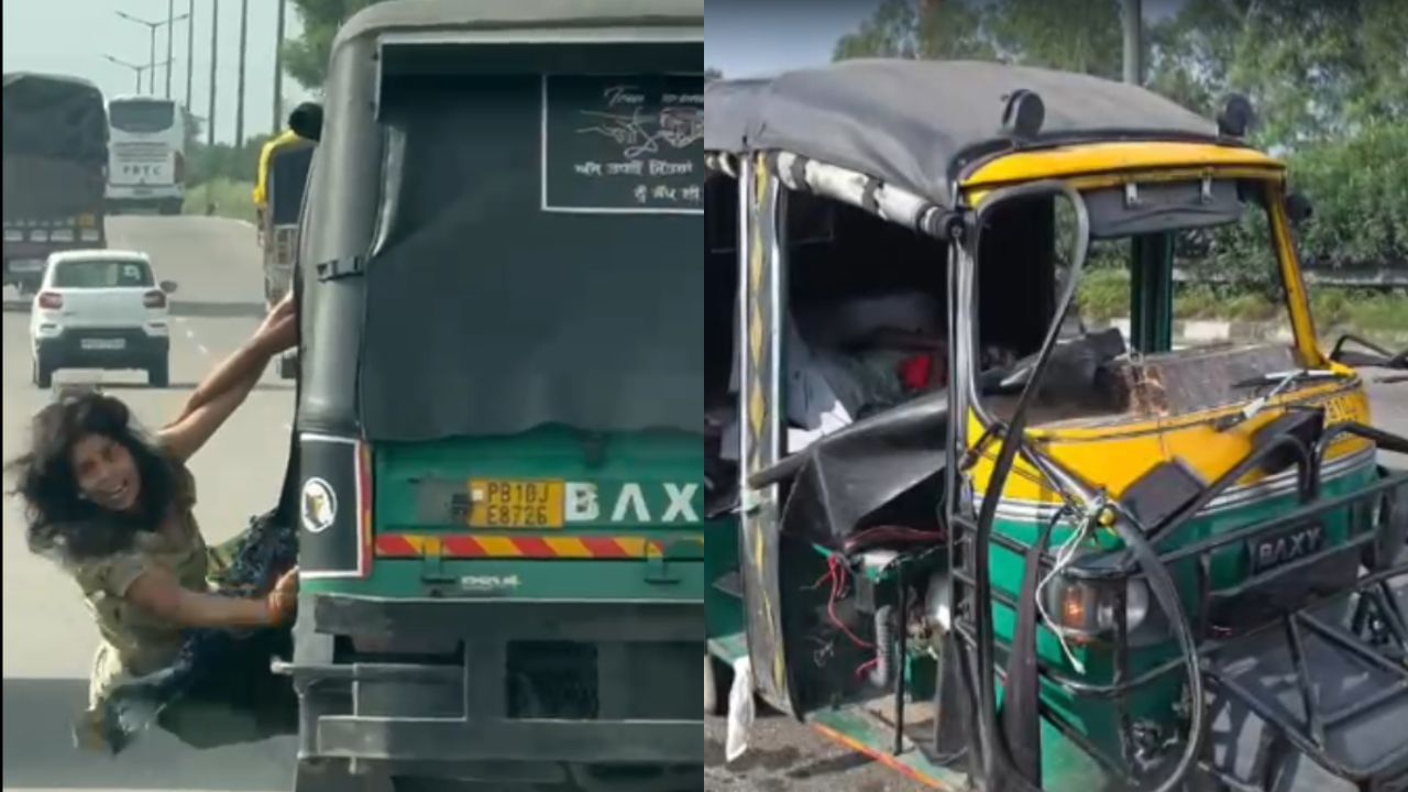 ਇਸ ਦੌਰਾਨ, ਆਟੋ ਚਾਲਕ ਨੇ ਹਾਈਵੇਅ ‘ਤੇ ਇੱਕ ਕਾਰ ਨੂੰ ਵੀ ਟੱਕਰ ਮਾਰ ਦਿੱਤੀ। ਉਸੇ ਸਮੇਂ, ਆਟੋ ‘ਚ ਲਟਕਦੀ ਔਰਤ ਰਾਹਗੀਰਾਂ ਤੋਂ ਮਦਦ ਦੀ ਗੁਹਾਰ ਲਗਾ ਰਹੀ ਹੈ।