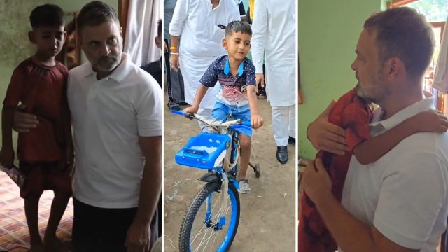 ਕਾਂਗਰਸ ਆਗੂ ਰਾਹੁਲ ਗਾਂਧੀ ਨੇ ਅੰਮ੍ਰਿਤਸਰ ਦੇ ਰਹਿਣ ਵਾਲੇ 8 ਸਾਲਾ ਅੰਮ੍ਰਿਤਪਾਲ ਸਿੰਘ ਨੂੰ ਸਾਈਕਲ ਤੋਹਫ਼ੇ ਵਜੋਂ ਦਿੱਤਾ। 15 ਸਤੰਬਰ ਨੂੰ ਪੰਜਾਬ ਦੀ ਆਪਣੀ ਫੇਰੀ ਦੌਰਾਨ, ਰਾਹੁਲ ਗਾਂਧੀ ਨੇ ਅੰਮ੍ਰਿਤਸਰ ਦੇ ਹੜ੍ਹ ਪ੍ਰਭਾਵਿਤ ਪਿੰਡ ਘੋਨੇਵਾਲ ਦਾ ਦੌਰਾ ਕੀਤਾ। ਅੰਮ੍ਰਿਤਪਾਲ ਨੇ ਹੰਝੂ ਭਰਿਆ ਅੱਖਾਂ ਨਾਲ ਰਾਹੁਲ ਗਾਂਧੀ ਨੂੰ ਦੱਸਿਆ ਕਿ ਉਸ ਦੀ ਸਾਈਕਲ ਹੜ੍ਹਾਂ ਵਿੱਚ ਖਰਾਬ ਹੋ ਗਈ ਹੈ। ਰਾਹੁਲ ਗਾਂਧੀ ਨੇ ਬੱਚੇ ਨੂੰ ਸ਼ਾਂਤ ਕੀਤਾ ਅਤੇ ਉਸ ਨੂੰ ਪਿਆਰ ਨਾਲ ਚੁੱਕਿਆ। ਇਸ ਦੌਰਾਨ ਰਾਹੁਲ ਗਾਂਧੀ ਨੇ ਘਰ ਵਿੱਚ ਬੱਚੇ ਦੀ ਟੁੱਟੀ ਹੋਈ ਸਾਈਕਲ ਵੀ ਦੇਖੀ।