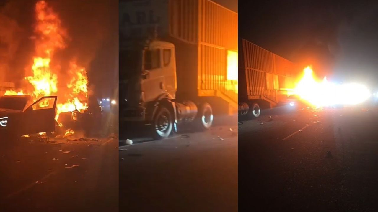 ਫਗਵਾੜਾ ਤੋਂ ਜਲੰਧਰ ਜਾ ਰਹੇ ਕਾਰਾਂ ਨੂੰ ਲੈ ਕੇ ਜਾਣ ਵਾਲੇ ਇੱਕ ਟਰੱਕ ਨੇ ਇੱਕ ਤੋਂ ਬਾਅਦ ਇੱਕ ਵਹੀਕਲਾਂ ਨਾਲ ਟਕਰਾਅ ਗਿਆ, ਜਿਸ ਕਾਰਨ ਇੱਕ ਕਾਰ ਨੂੰ ਅੱਗ ਲੱਗ ਗਈ। ਕਾਰ ਤੋਂ ਲੱਗੀ ਅੱਗ ਦੂਜੀ ਕਾਰ ਵਿੱਚ ਫੈਲ ਗਈ ਅਤੇ ਟਰੱਕ ਨੂੰ ਵੀ ਅੱਗ ਲੱਗ ਗਈ। ਇੱਕ ਆਟੋ-ਰਿਕਸ਼ਾ ਟੈਂਕਰ ਨਾਲ ਟਕਰਾ ਗਿਆ, ਜਿਸ ਤੋਂ ਬਾਅਦ ਐਕਟਿਵਾ ਸਵਾਰ ਲੋਕ ਅਤੇ ਮੋਟਰਸਾਈਕਲ ਸਵਾਰ ਵੀ ਉੱਥੇ ਆ ਕੇ ਟਕਰਾਅ ਗਿਆ।