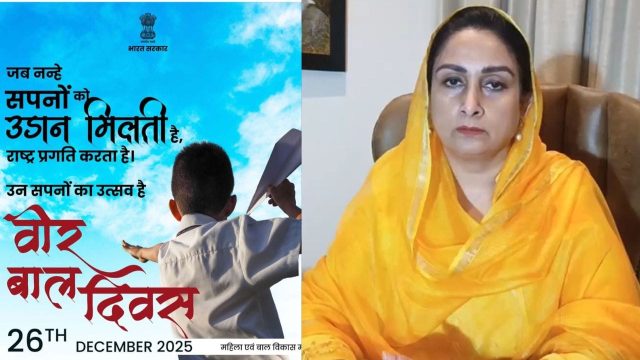 ਹਾਲਾਂਕਿ, ਕੇਂਦਰ ਤੋਂ ਜਿੱਥੇ ਪਹਿਲਾਂ ਹੀ ਸਿੱਖ ਕੌਮ ਨਾਰਾਜ਼ ਸੀ। ਹੁਣ ਕੇਂਦਰ ਦੇ ਇੱਕ ਹੋਰ ਪ੍ਰੋਗਰਾਮ ‘ਤੇ ਵਿਵਾਦ ਖੜ੍ਹਾ ਹੋ ਗਿਆ ਹੈ। ਪ੍ਰੈਸ ਇਨਫੋਰਮੇਸ਼ਨ ਬਿਊਰੋ ਵੱਲੋਂ ‘ਵੀਰ ਬਾਲ ਦਿਵਸ‘ ਦਾ ਇੱਕ ਪੋਸਟਰ ਸ਼ੇਅਰ ਕੀਤਾ ਗਿਆ ਹੈ, ਜਿਸ ‘ਚ ਇੱਕ ਪ੍ਰੋਗਰਾਮ ਦੇ ਸਿੱਧੇ ਪ੍ਰਸਾਰਨ ਦੀ ਜਾਣਕਾਰੀ ਦਿੱਤੀ ਗਈ ਹੈ। ਇਸ ‘ਚ ਹਿੰਦੀ ‘ਚ ਲਿਖਿਆ ਹੋਇਆ ਹੈ- जब नन्हे सपनों को उडान मिलती है, राष्ट्र प्रगति करता है। उन सपनों का उत्सव है वीर बाल दिवस।
