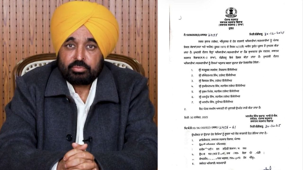 ਪੰਜਾਬ ਸਰਕਾਰ ਨੇ ਇਸ ਸਾਲ ਦੇ ਆਖਿਰੀ ਦਿਨਾਂ ‘ਚ ਭ੍ਰਿਸ਼ਟਾਚਾਰ ਖਿਲਾਫ਼ ਇੱਕ ਹੋਰ ਕਾਰਵਾਈ ਕੀਤੀ ਹੈ। ਸਰਕਾਰ ਨੇ ਅੰਮ੍ਰਿਤਸਰ ਇੰਪਰੂਵਮੈਂਟ ਟਰੱਸਟ ਦੇ ਸੱਤ ਅਧਿਕਾਰੀਆਂ ਨੂੰ ਸਸਪੈਂਡ ਕਰ ਦਿੱਤਾ ਹੈ। ਇਹ ਸਾਰੇ ਅਧਿਕਾਰੀ ਇੰਜੀਨਿਅਰਿੰਗ ਵਿਭਾਗ ਨਾਲ ਜੁੜੇ ਹਨ। ਸਥਾਨਕ ਸਰਕਾਰ ਵਿਭਾਗ ਨੇ ਇਸ ਸਬੰਧ ‘ਚ ਹੁਕਮ ਜਾਰੀ ਕੀਤਾ ਹੈ। ਜਾਣਕਾਰੀ ਮੁਤਾਬਕ, ਇਹ ਕਾਰਵਾਈ ਟਰੱਸਟ ‘ਚ 52.80 ਕਰੋੜ ਦੇ ਟੈਂਡਰ ਘੁਟਾਲੇ ਮਾਮਲੇ ‘ਚ ਕੀਤੀ ਗਈ ਹੈ।
